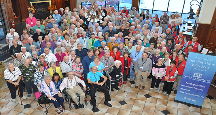 연금과 혜택의 대표는 미주리 브랜슨에서 열린 2년마다 회의에서 은퇴 목사와 선교사 협회(ARMM)의 회원과 함께 조직의 100주년을 축하했습니다.