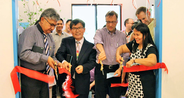 Present for the ribbon cutting were Im, Academic Dean Floyd Cunningham, Board of Trustees Chair Kafoa Muaror, and other visitors.