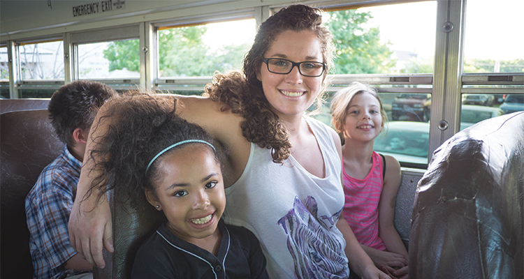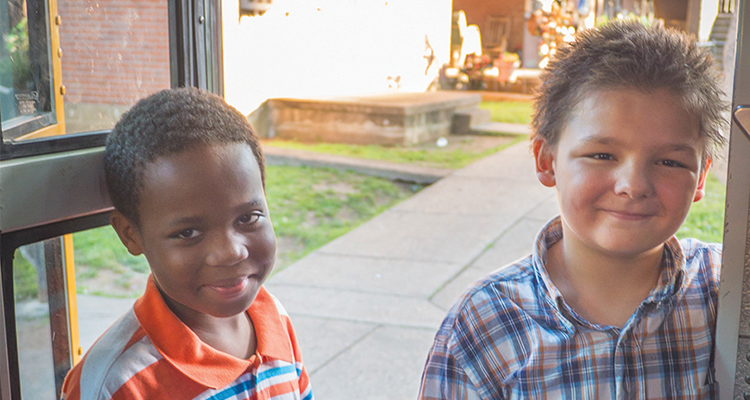 Three boys clamber onto a no-longer-new school bus and are welcomed by cheerful greetings and high fives. Wearing ripped jeans, faded tees, and worn-out sneakers — the uniform of childhood — the boys begin chatting away to their peers and leaders about homework assignments, basketball games, and siblings who bring stray cats home.