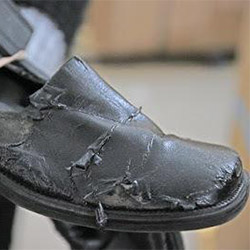 “Twenty percent?” I repeated, disbelieving. One of the women showed me a pair of shoes of which the leather exterior was peeling horribly.