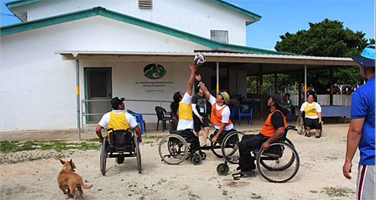 Siaosi, a paraplegic, and Maneo, a double amputee, playfully fought over who would get the ball while children with visual impairment gathered around a table to play a game of soccer. The children listened intently to the sound of the rolling ball and then hit it into the opponent’s goal.