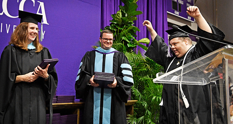 Earlier this month, he finally got there. Schnelle earned his bachelor’s degree in sport management, graduating with honors.