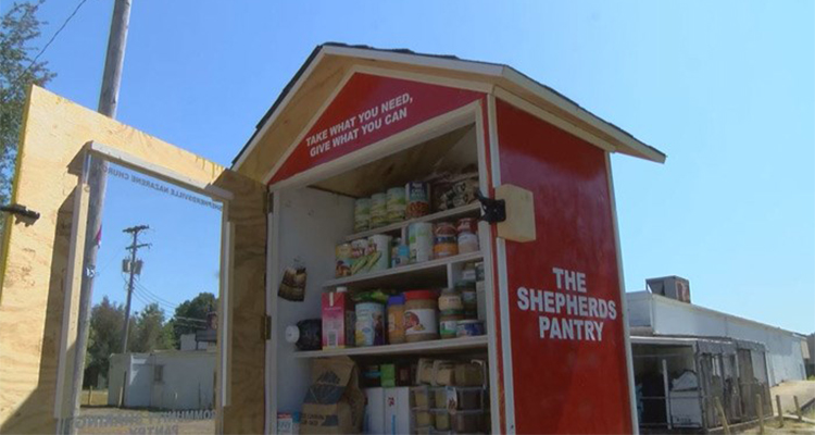 (Wave 3 News, September 4) Standard pantry items, like dried cranberries, oats and cornbread mixes, sit inside a little red and yellow box outside of the Shepherdsville First Church of the Nazarene.