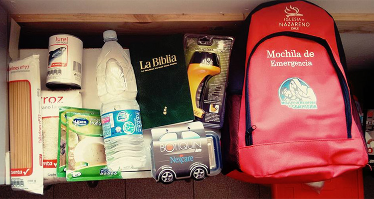 Risk prevention, medical, and communications personnel collaborated alongside the Church of the Nazarene to develop disaster relief kits as a way to demonstrate the love of God in a time of disaster to Chileans.