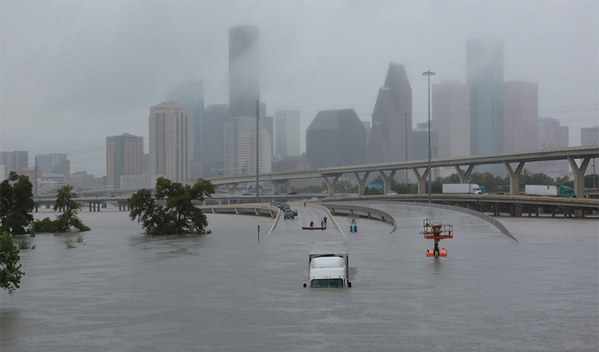Harvey submergiu rodovia Interestadual 45 em Houston com inundações registradas e generalizadas em 27 de agosto (foto Reuters).